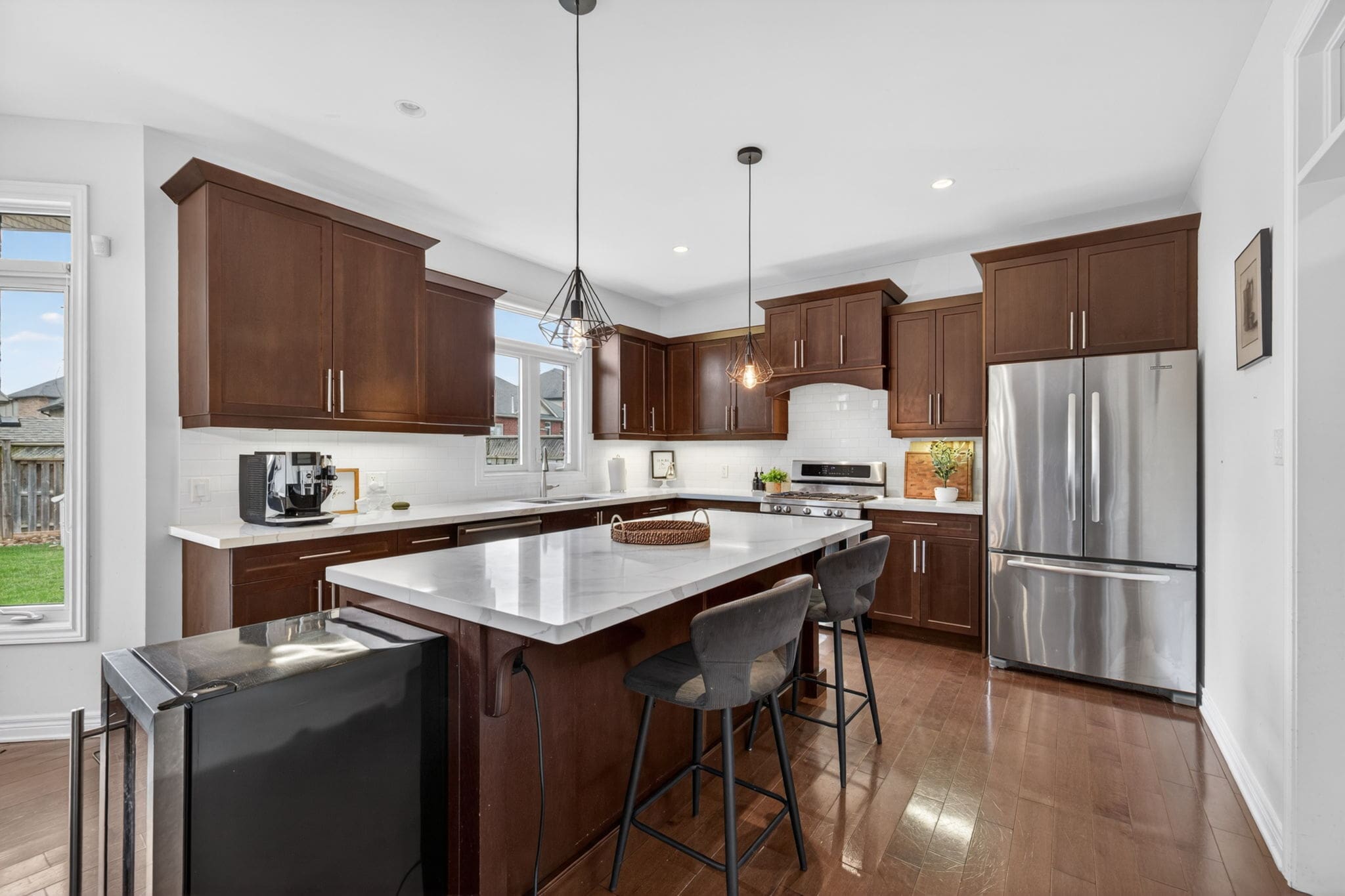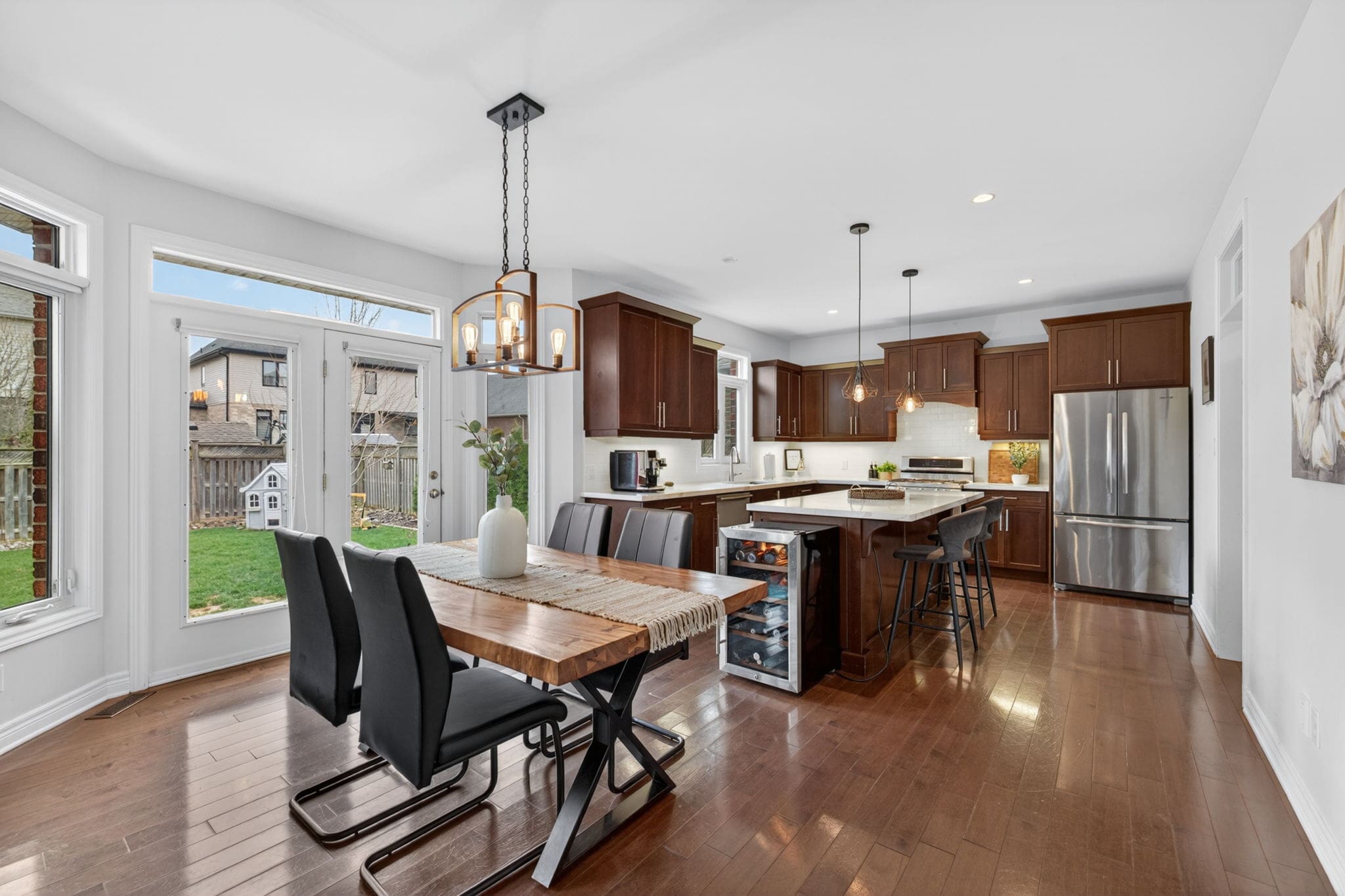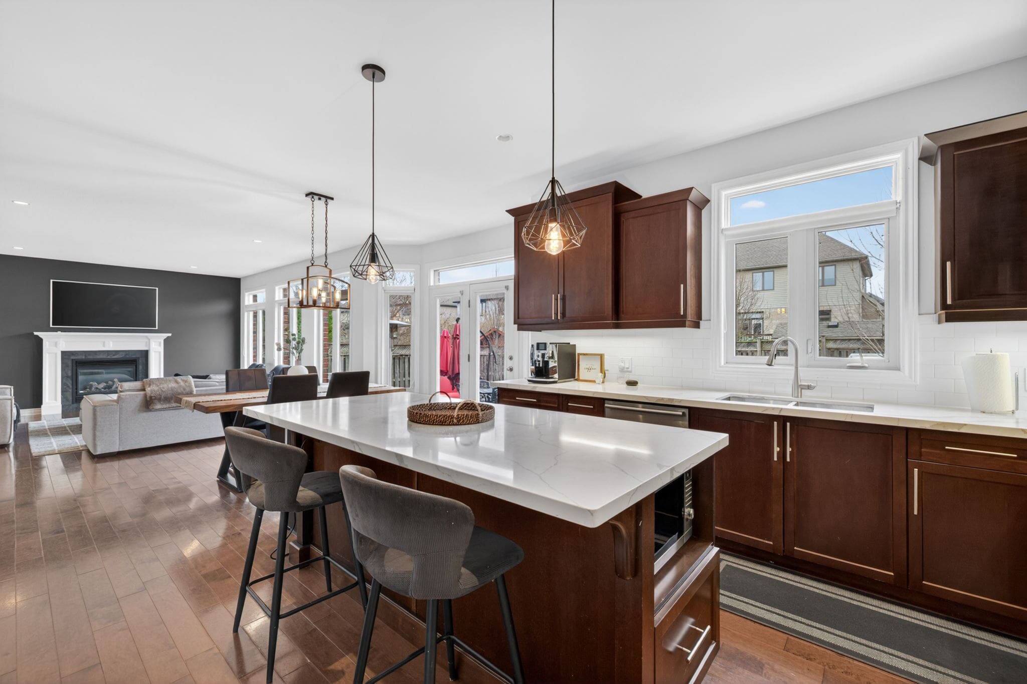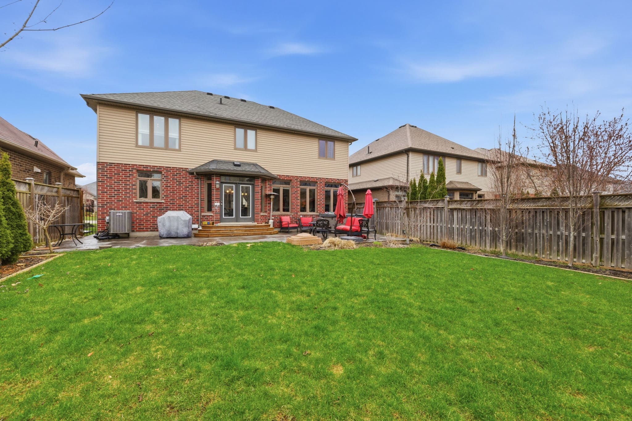 Welcome to 3208 Morgan Avenue, a beautifully upgraded home in the sought after Andover Trails neighbourhood of South London, built by Westhaven Homes. Offering a perfect blend of style, function, and location, this home is ideal for families looking for space and modern finishes. Step inside to a grand open to above foyer and rich hardwood flooring that flows into an inviting main level. The dining area is perfect for hosting, while the family room impresses with a gas fireplace and a wall of windows that fill the space with natural light and overlook the landscaped backyard. The kitchen has been thoughtfully updated, featuring quartz countertops throughout, complemented by a large island, subway tile backsplash, stainless steel appliances, and a bright window above the sink. Convenient access to the laundry and mudroom adds to the home’s functionality. Upstairs, the spacious primary suite offers a tray ceiling, walk in closet, and a beautifully updated ensuite with quartz countertops. Three additional well sized bedrooms and a full 4 piece bathroom, with quartz counters, complete the second level. The fully finished basement provides excellent additional living space with new luxury vinyl plank flooring, a 5th bedroom, three piece bathroom, and a versatile rec room with a custom built in desk, ideal for a home office, study area, or kids’ zone. Outside, enjoy a fully fenced and meticulously landscaped oversized backyard featuring a stamped concrete patio and an included hot tub, creating the perfect setting for entertaining or relaxing year round. Located close to top rated schools, parks, the YMCA, shopping, and with easy access to Highway 401, this home delivers both convenience and lifestyle in one of South London’s most desirable communities.