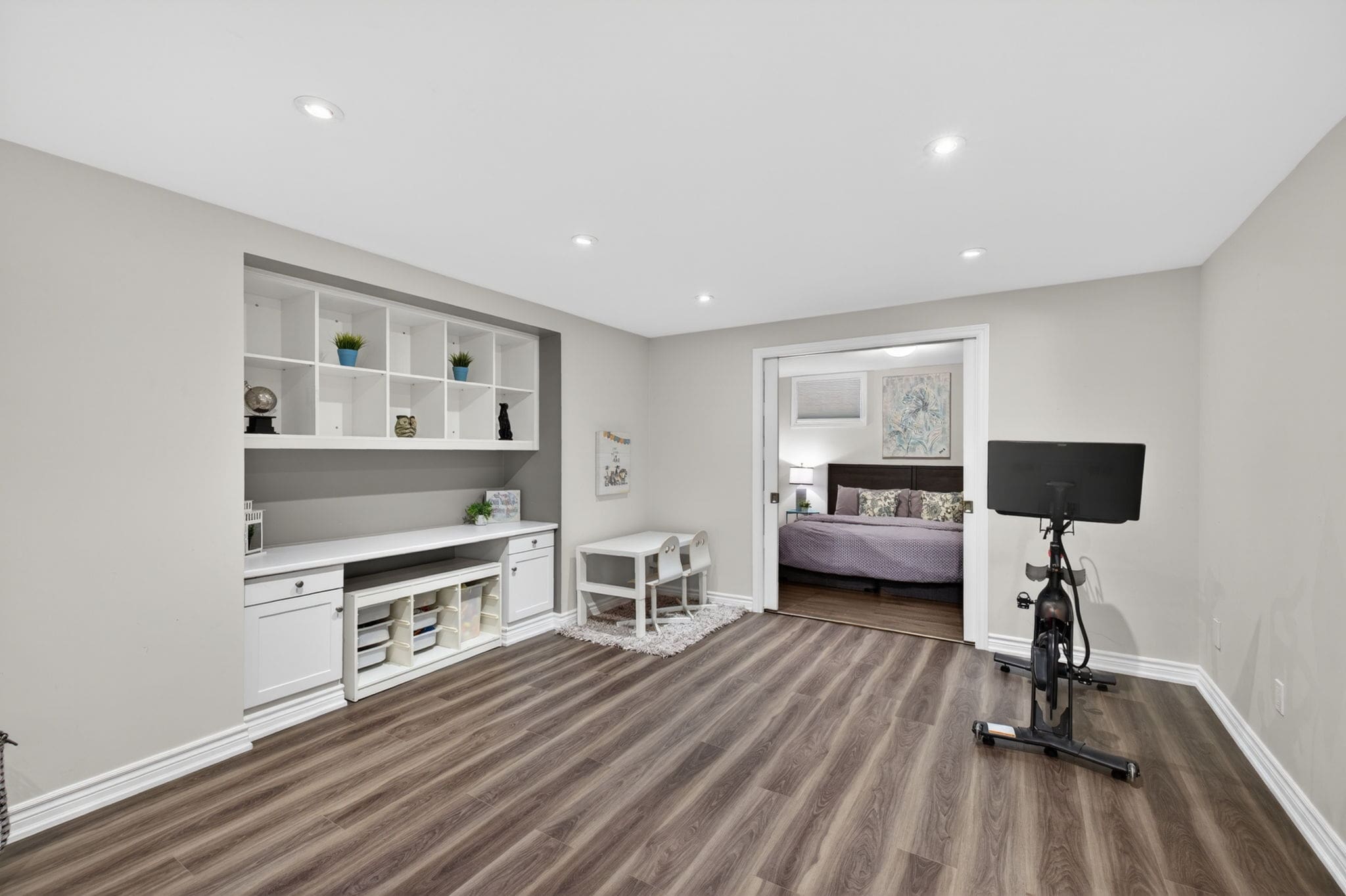 Exclusions: Telus alarm, wall mirror in the foyer, wall mounted tvs, kitchen mini fridge